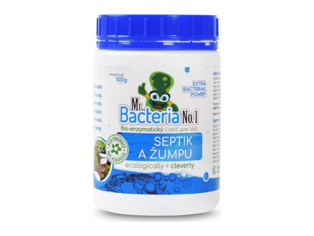 Bio-enzymatický čistič Mr. Bacteria No.1 je vysoce účinný přípravek pro udržování čistoty septiků a žump. Obsahuje 400 miliard bakterií v 0,5 kg balení , které pomáhají rozkládat organický odpad a eliminovat nepříjemný zápach.
