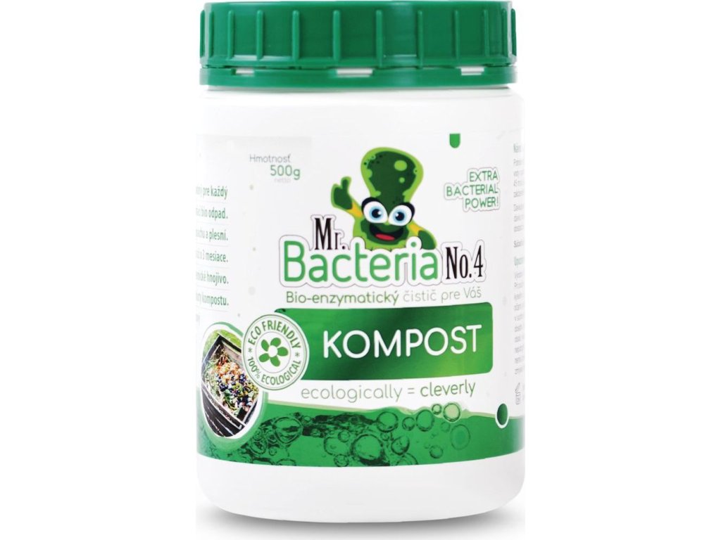 Zcela přírodní a ekologický bio-aktivní přípravek Mr. Bacteria No. 4 urychlovač kompostu je určen k urychlení kompostování. Obvyklá délka kompostování je v rozsahu jednoho roku. Přípravek Mr. Bacteria No. 4 umí značně urychlit proces kompostování zahradního odpadu a vybraného biologického odpadu z Vaší domácnosti. Mr. Bacteria No. 4 je směs bakteriálních kultur smíchaných s nezpracovanými enzymy, emulgátory a živinami, speciálně navržená pro kompostování organických odpadů (odpad po sezónním prořezávání okrasných keřů - štěpka, kůra, piliny, tráva, listí, ovoce, zelenina, květiny, bioodpad z domácností a pod. Výrobek funguje ve dvou fázích: urychlení nastartování a výrazné zkrácení celého procesu kompostování. Použitím přípravku Mr. Bacteria No. 4 dochází k maximalizaci hnojiv hodnot kompostu. Výsledkem použití přípravku Mr. Bacteria No. 4. je zkrácení délky kompostování.