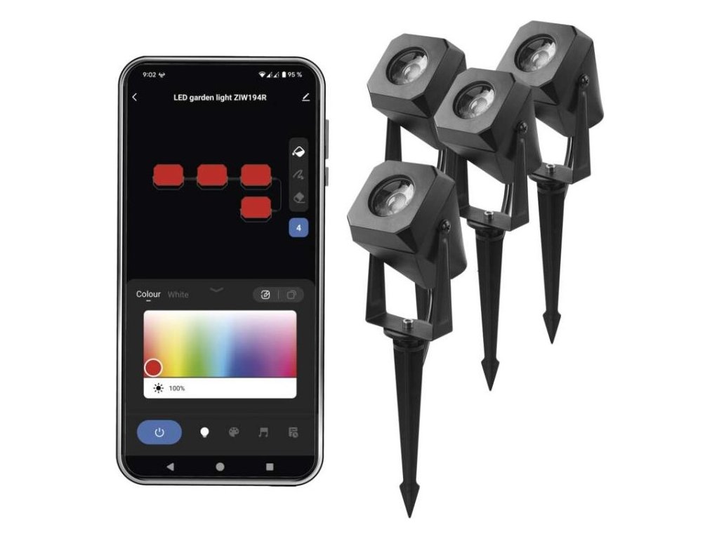 GoSmart venkovní LED bodové světlo, startovací sada, 4 díly, 7 W, RGBIC stmívatelné, WiFi