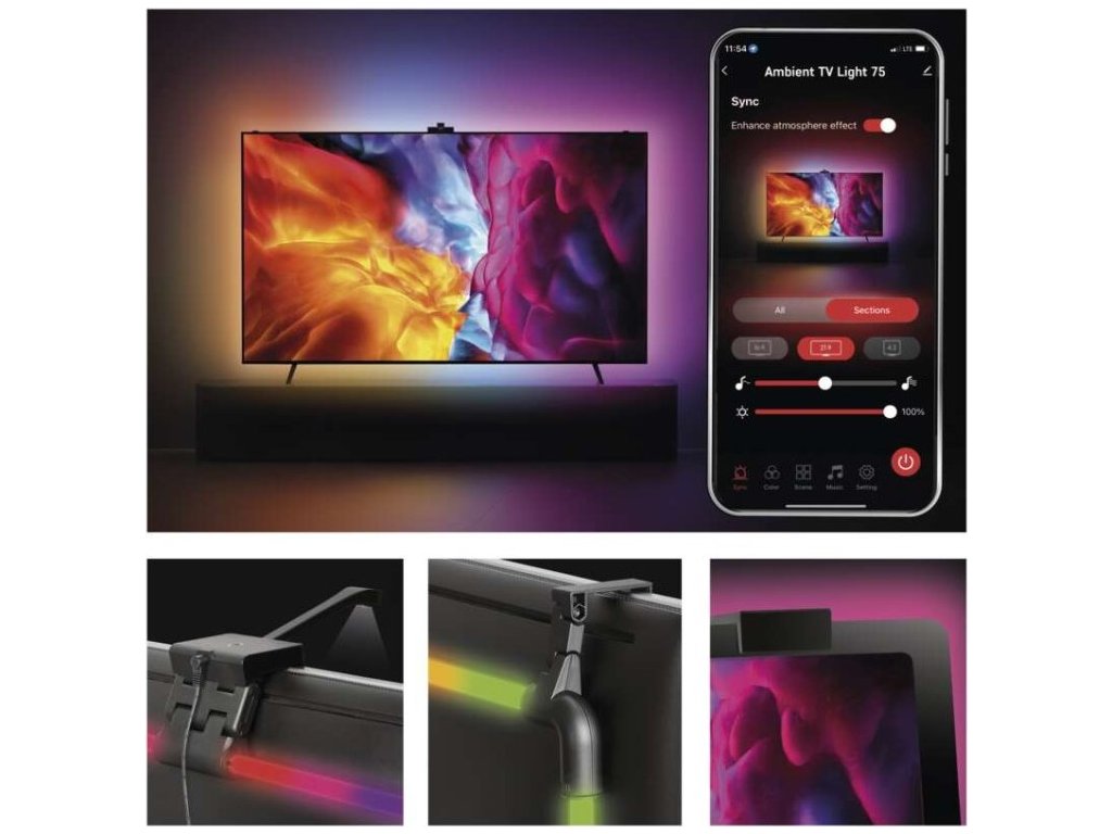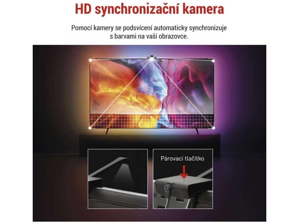 GoSmart LED osvětlení automaticky přizpůsobuje barvy podsvícení aktuálnímu obrazu na televizi díky pokročilé HD synchronizační kameře. Výsledkem je hladký přechod barev a dokonalá vizuální harmonie, která chrání váš zrak a zlepšuje kontrast obrazu.