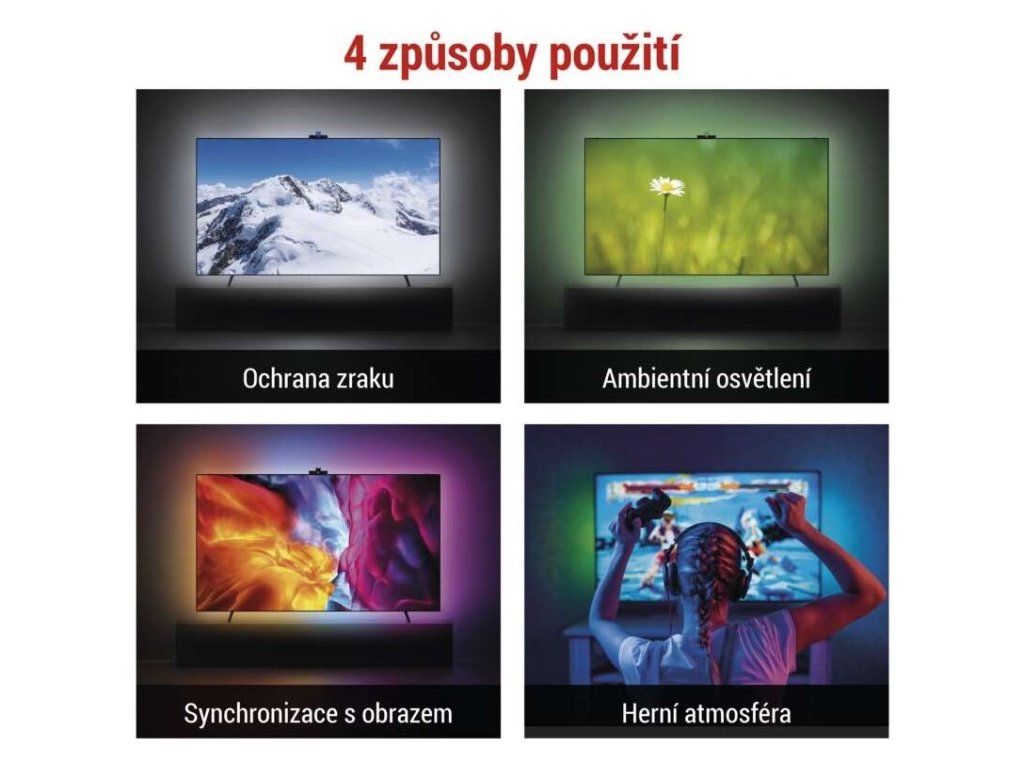 Tento model nabízí vše, co potřebujete k dokonalému podsvícení televize, a je ideální volbou pro vytvoření příjemné atmosféry při sledování vašich oblíbených pořadů.