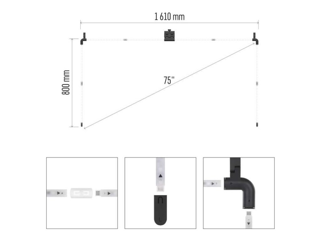 Instalace je snadná a rychlá díky speciálním držákům, které drží LED pásky pevně na místě. Pokud chcete osvětlení přesunout, jednoduše ho odpojíte a znovu připevníte.