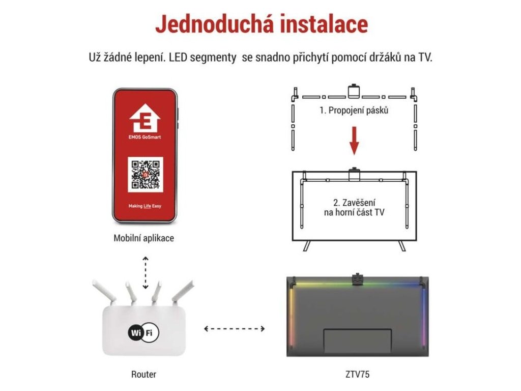 LED ambientní RGB GoSmart osvětlení EMOS ZTV75 za TV 75“ (189 cm) - revoluce v domácí zábavě