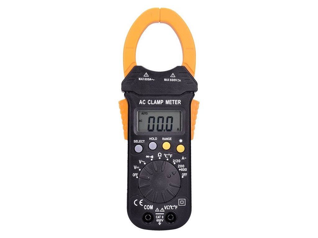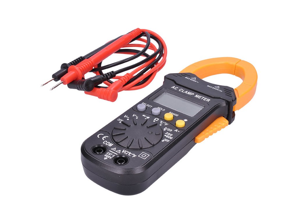 Multimetr klešťový, max. AC 600V/600A, DC 600V, test diody, bzučák, odpor, teplota