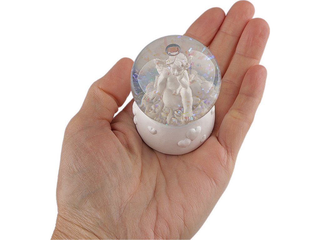 Sněžítko s andílkem využijete nejen jako dekoraci, ale také jako těžítko, které zkrášlí váš stůl. Zatřepte s ním a nechte se unášet jemným třpytivým sněžením. Sněžítko je vhodné i jako milý dárek.