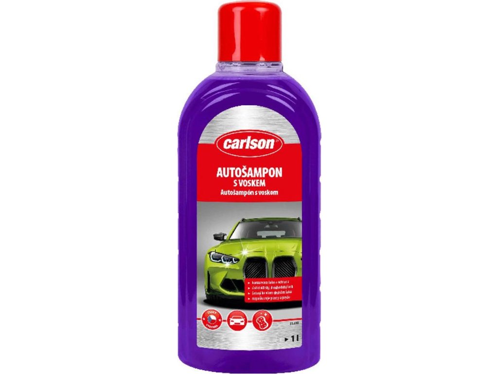 Autošampon s voskem Carlson je přípravek určený k mytí karoserií motorových vozidel s ochranným účinkem vosku. Zanechává lesklý povrch a vytváří ochranný film, který odpuzuje vodu a nečistoty. Je vhodný pro všechny typy laků.