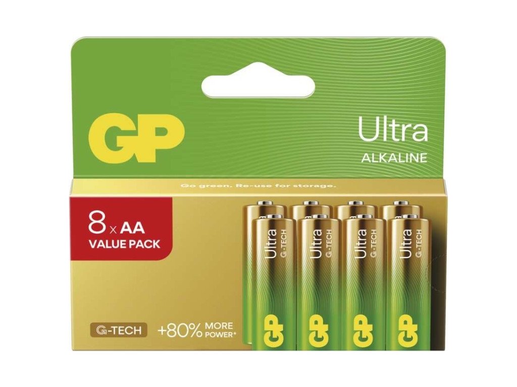Alkalická baterie GP Ultra AA (LR6), 8 ks