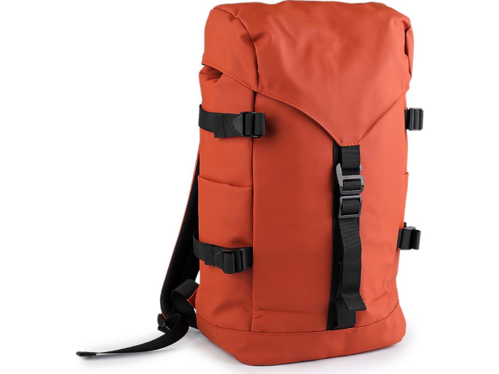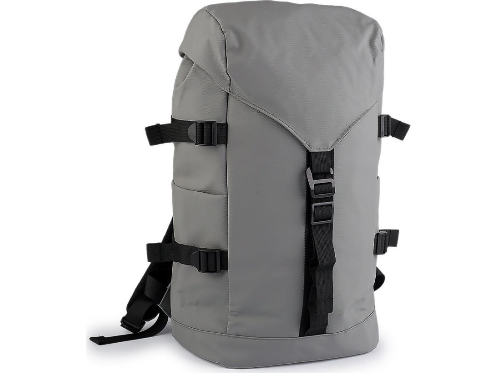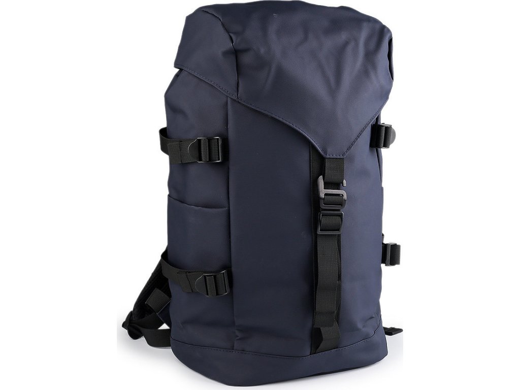 Velký textilní batoh se hodí především na výlety, do posilovny nebo do školy. Má pogumovaný, nepromokavý povrch, který zaručuje snadnou údržbu. Uzavírá se na klopu s poutkem a kovovým háčkem s plynulou regulací délky. Pod klopou najdete zdrhovadlo se šňůrkou a posuvnou brzdičkou. Uvnitř má batoh polstrovanou kapsu. Po stranách batohu jsou kapsy na láhve a různá poutka na upevnění dalších předmětů. Nahoře má batoh praktické poutko na pověšení, polstrované nastavitelné popruhy s plynulou regulací délky a polstrovaná záda.