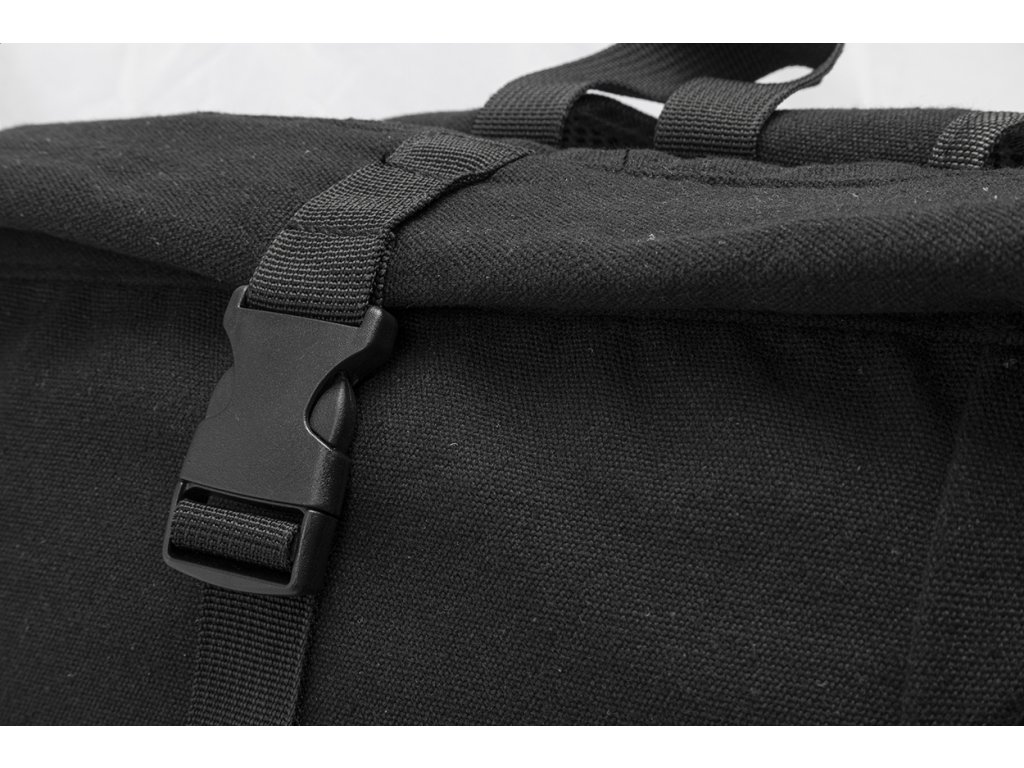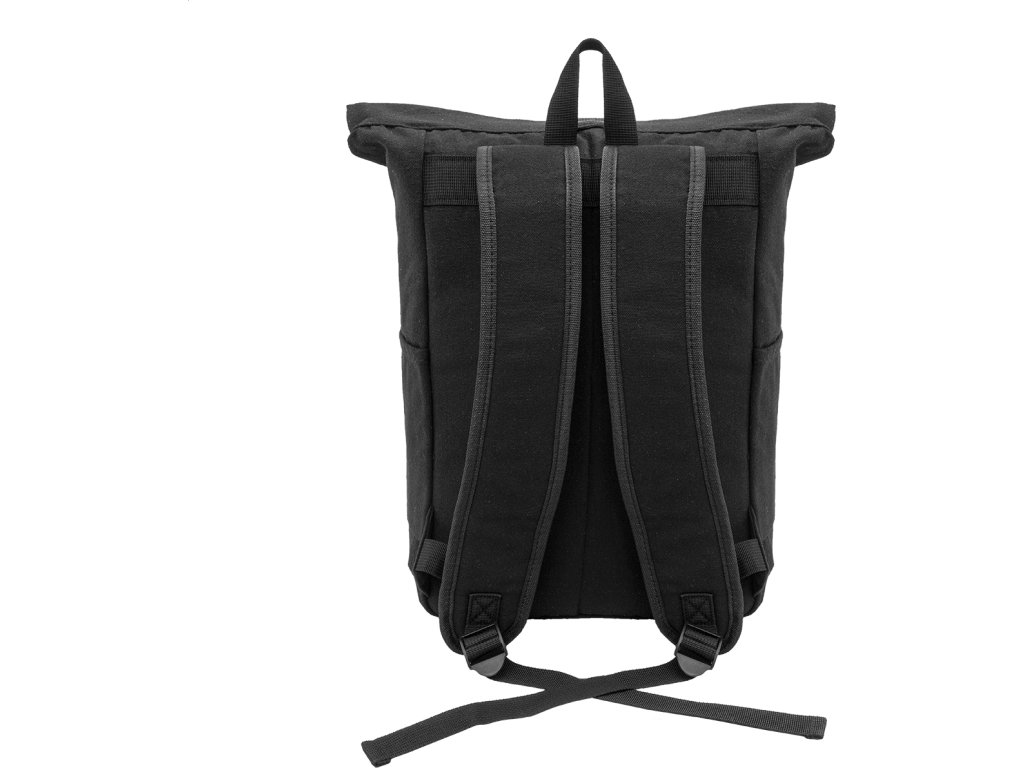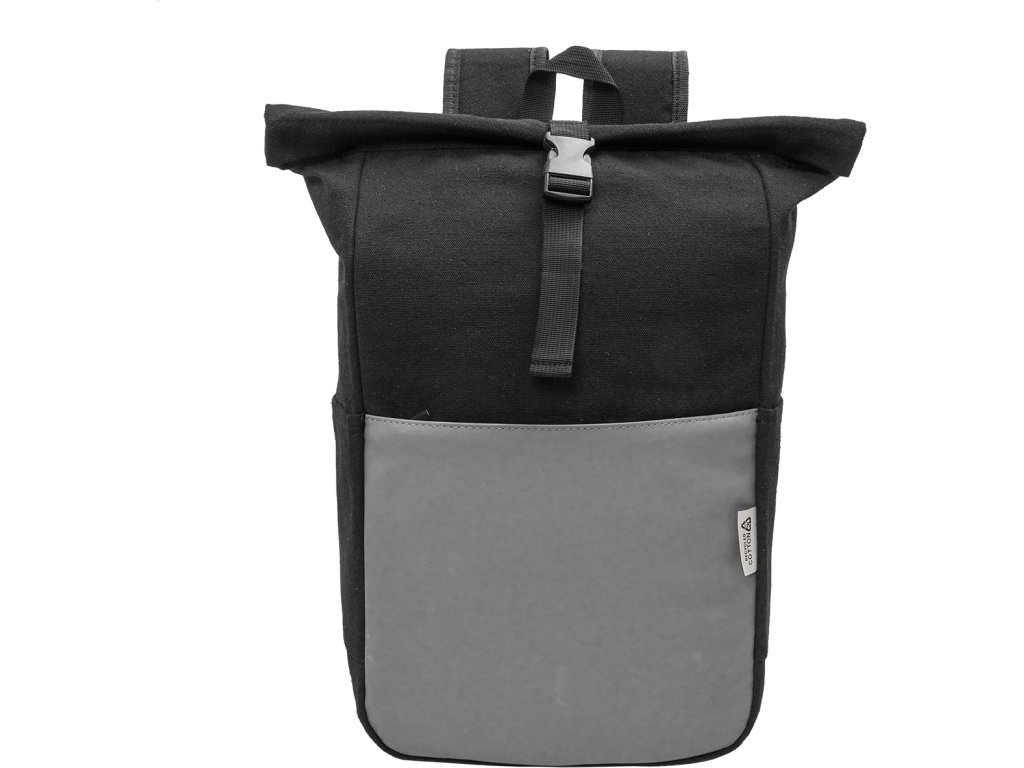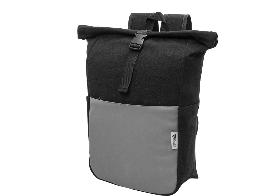 Rolovací batoh z recyklovaného plátna se zapínáním na přezku a přední kapsou na zip z měkké recyklované PU kůže. S polstrovanou přihrádkou na notebook (15"), bočními kapsami, polstrovanými zády a ramenními popruhy. 70% recyklované bavlny a 30% RPET polyesteru. S výrazným štítkem z recyklované bavlny.