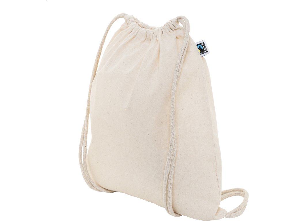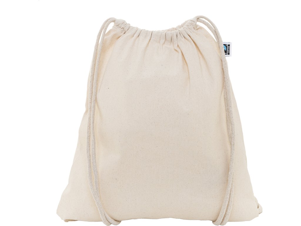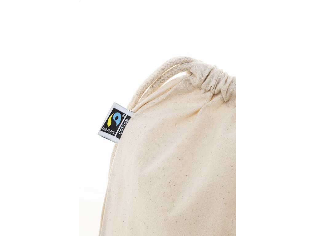 Fairtrade bavlněný vak se stahovací šňůrkou s výraznou Fairtrade etiketou. 100% Fairtrade bavlna, 180 g/m².