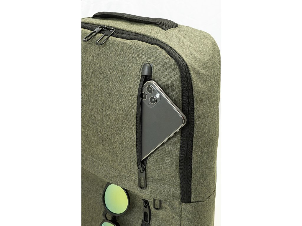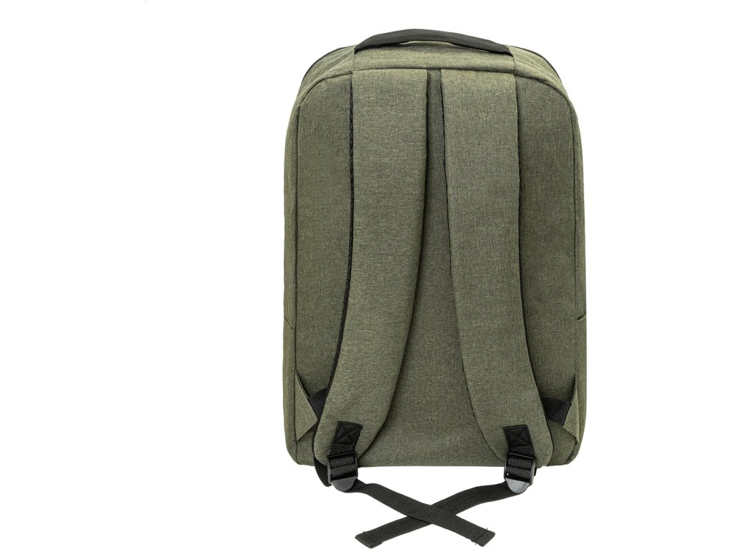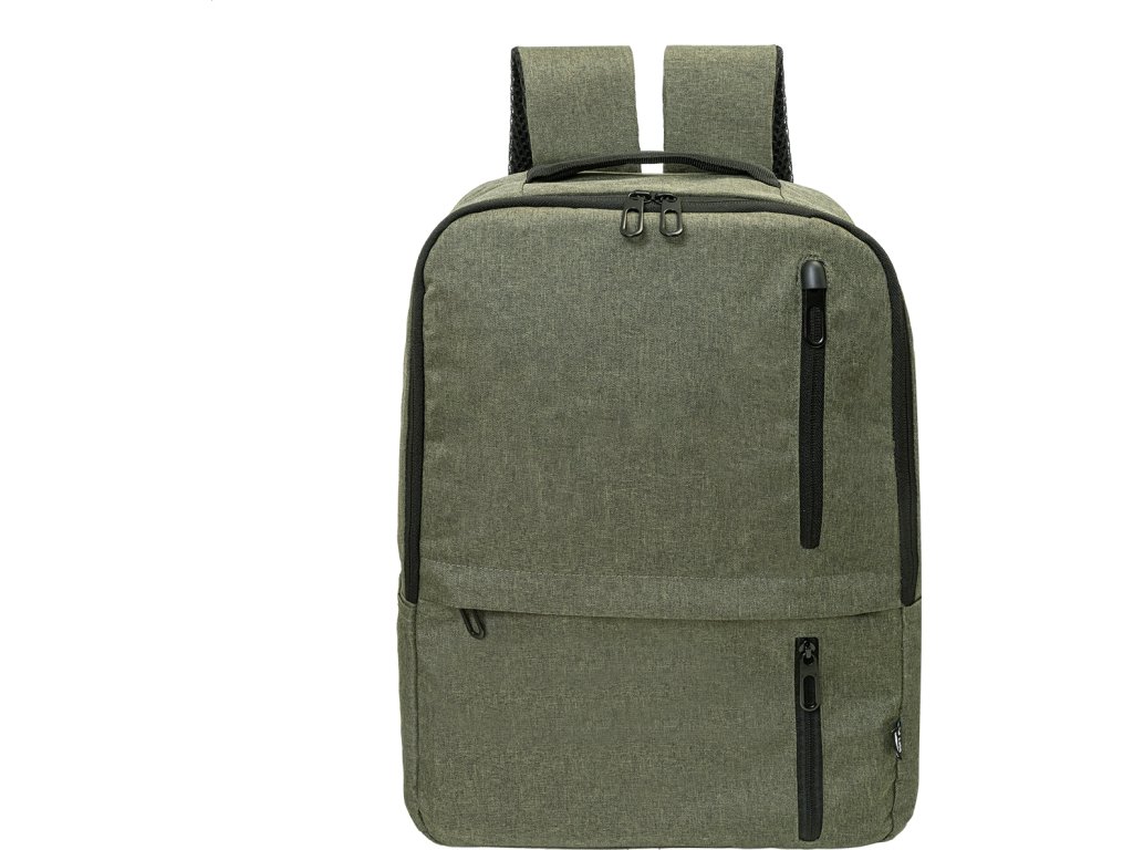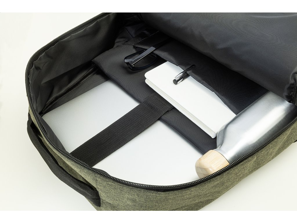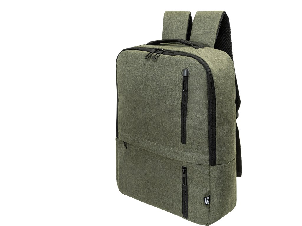 RPET batoh s hlavní přihrádkou na zip a 3 předními kapsami na zip. S polstrovanými přihrádkami na tablet (10") a notebook (15"), polstrovanými zády a ramenními popruhy. 600D RPET polyester s výrazným štítkem RPET.