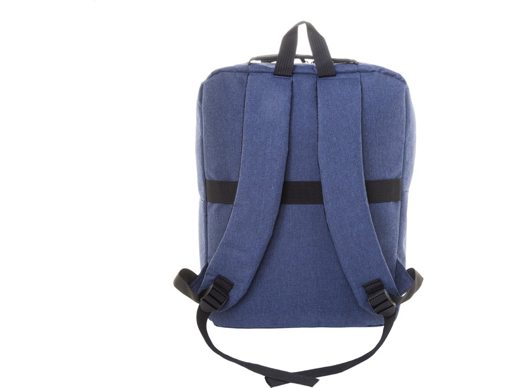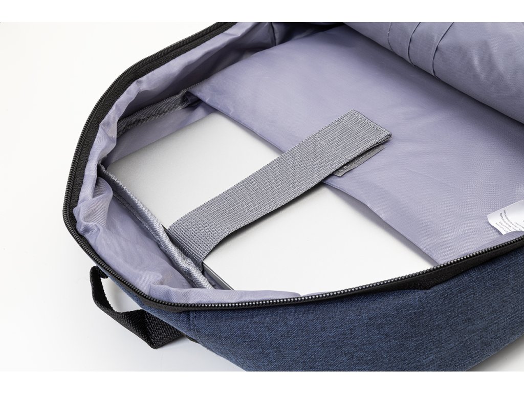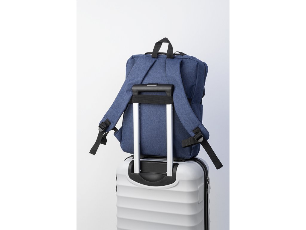 Batoh RPET s hlavním oddílem na zip, 2 kapsami na zip, boční kapsou a polstrovanou přihrádkou na notebook (15"). S popruhem na vozík, polstrovanými zády a ramenními popruhy. Polyester 600D RPET, s výrazným štítkem RPET.