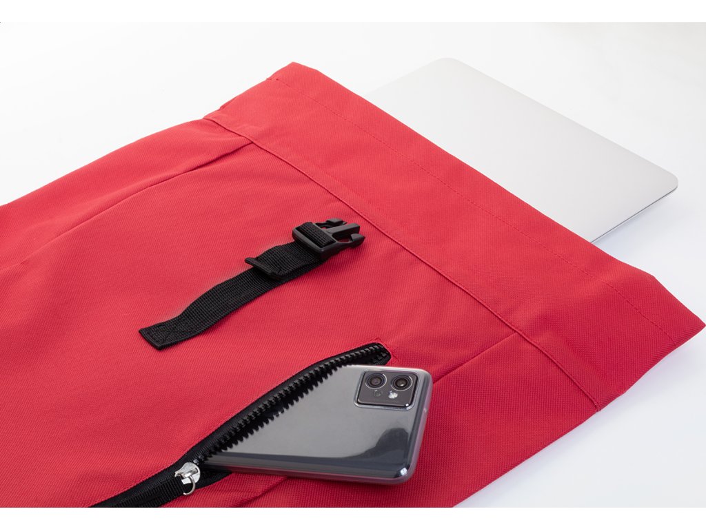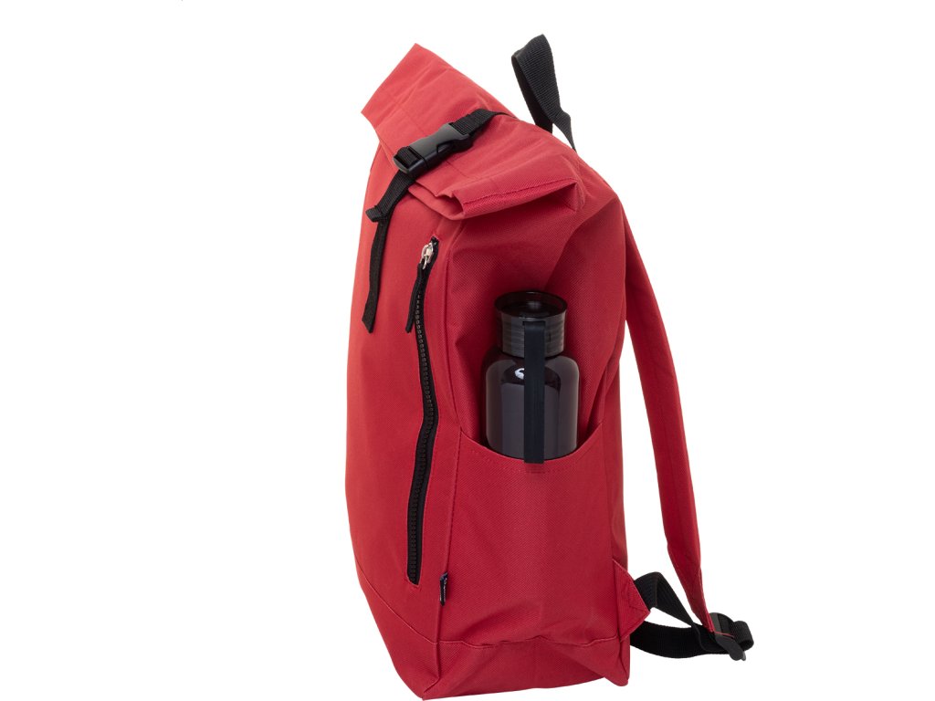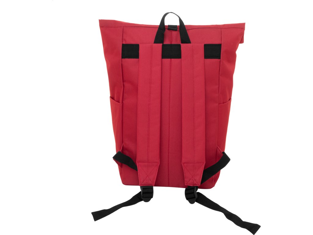 Rolovací batoh RPET se zapínáním na přezku, přihrádkou na notebook (14") a přední kapsou na zip. S polstrovanými zády a ramenními popruhy. Polyester 600D RPET s výrazným štítkem RPET.