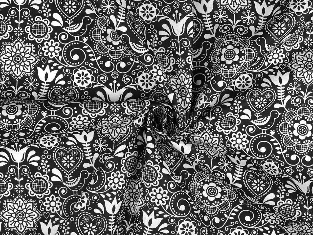 Látku s folklorním potiskem využijete na šití polštářů, povlečení, ubrusů, prostírání, běhounů, závěsů, tašek i pytlíků.