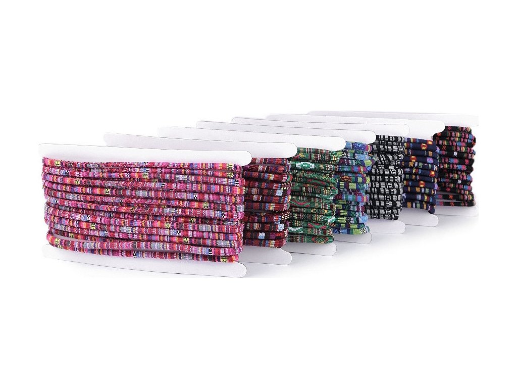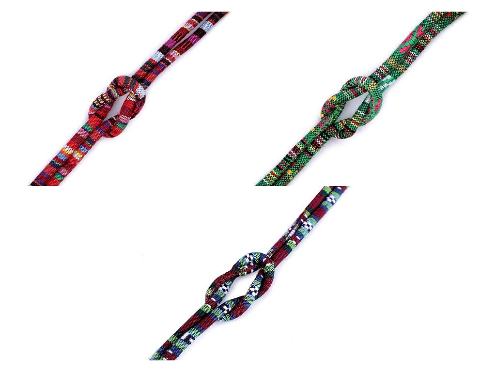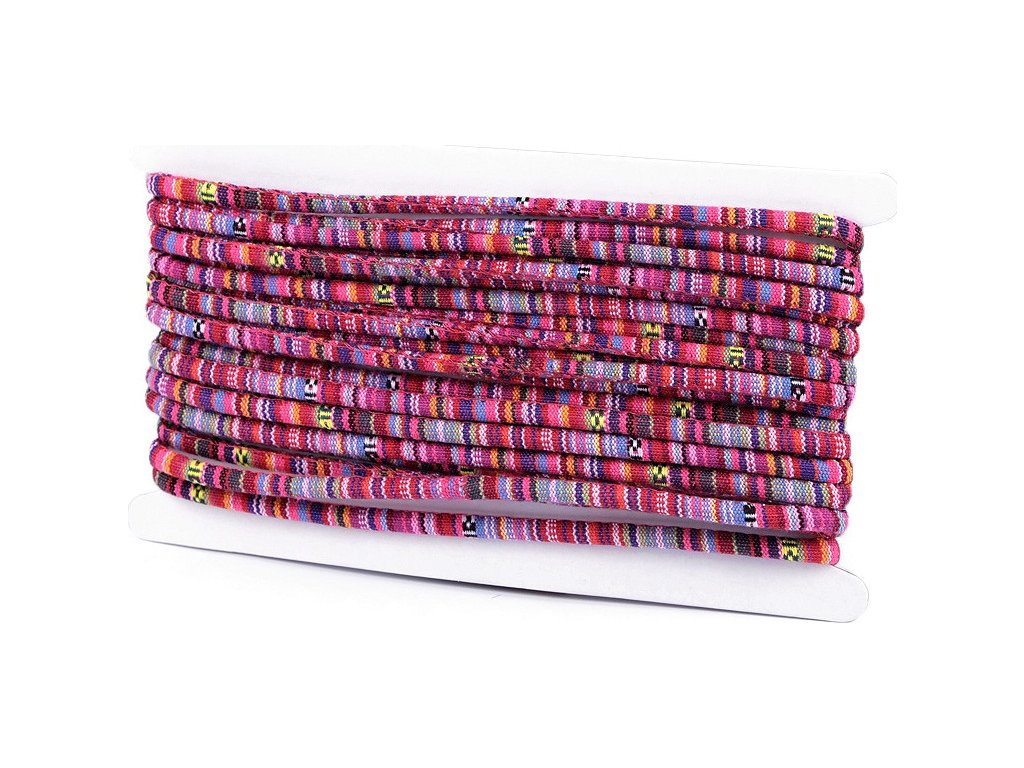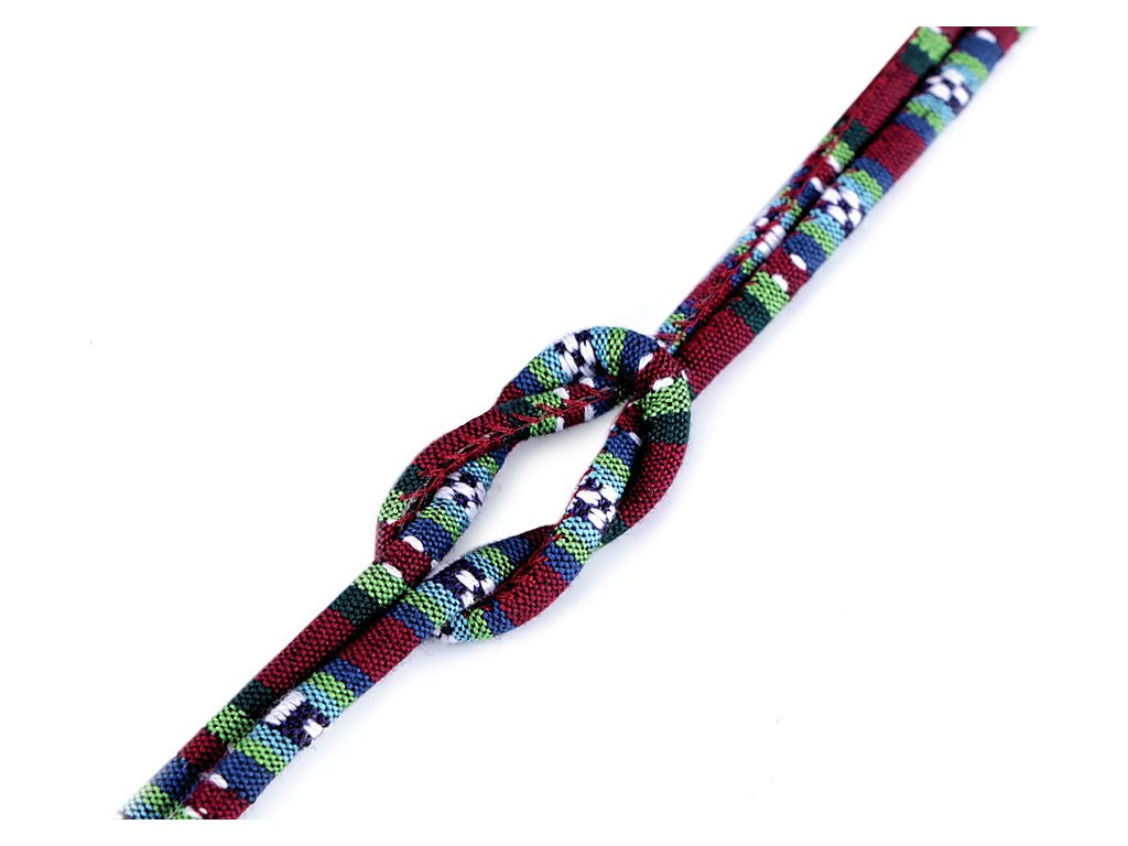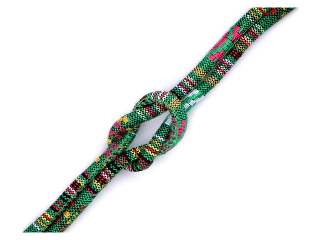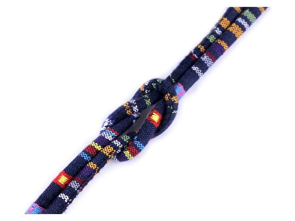 Barevnou šňůru s indiánským motivem a výplní využijete do tunýlků mikin, kalhot nebo bund, nebo jako nevšední ozdobu oděvů či obuvi. Vytvoříte z něj jednoduchý trendy pásek, náhrdelník či náramek. Šňůra je pevná, skvěle se tak uplatní při výrobě vaků na záda nebo tašek.