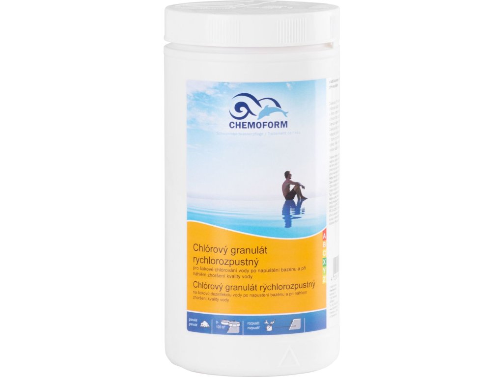 Granulát k šokovému ošetření vody stabilizovaný pro všechny stupně tvrdosti vody. Obsahuje 56% aktivního chlóru.
