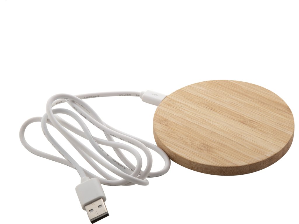 Bezdrátová nabíječka (5W) s bambusem. Vč. USB nabíjecího kabelu.