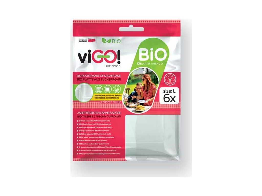 viGO! BIO talíř z cukrové třtiny hranatý 20cm - 6 ks