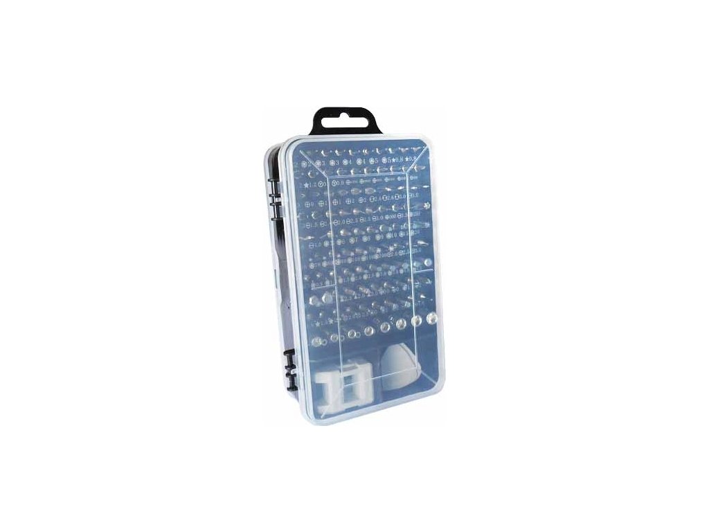 Sada obsahuje 12ks různých druhů nástrojů a 98ks bitů a nástavců vhodných například pro opravy mobilních telefonů a elektroniky.