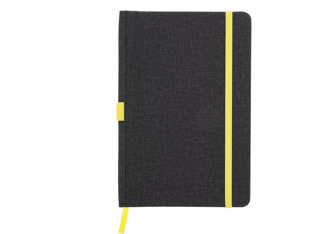 Texturovaný blok A5, potažený PU kůží se záložkou, gumičkou a držákem pera. 96 linkovaných listů.
