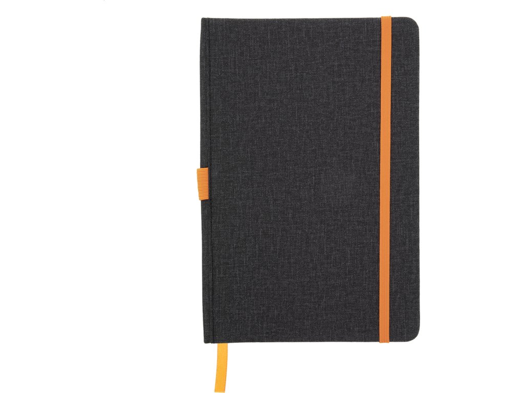 Texturovaný blok A5, potažený PU kůží se záložkou, gumičkou a držákem pera. 96 linkovaných listů.