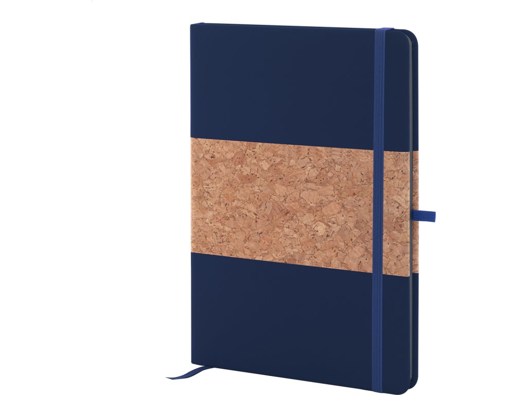 Blok A5 potažený přírodním korkem a recyklovanou PU kůží se záložkou v odpovídající barvě, gumičkou a držákem na pero. S 80 linkovanými listy z recyklovaného papíru.