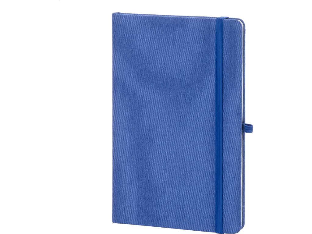 Blok potažený recyklovanou bavlnou s 80 linkovanými listy z recyklovaného papíru. Se záložkou v odpovídající barvě, gumičkou a držákem na pero. Velikost A5.