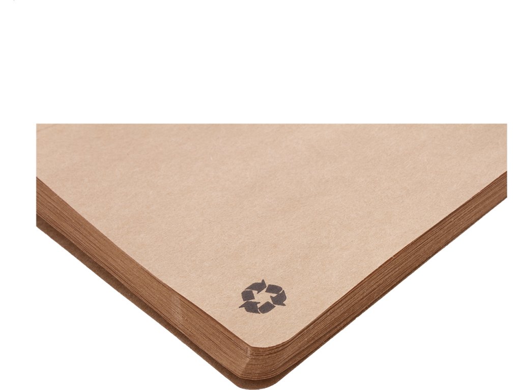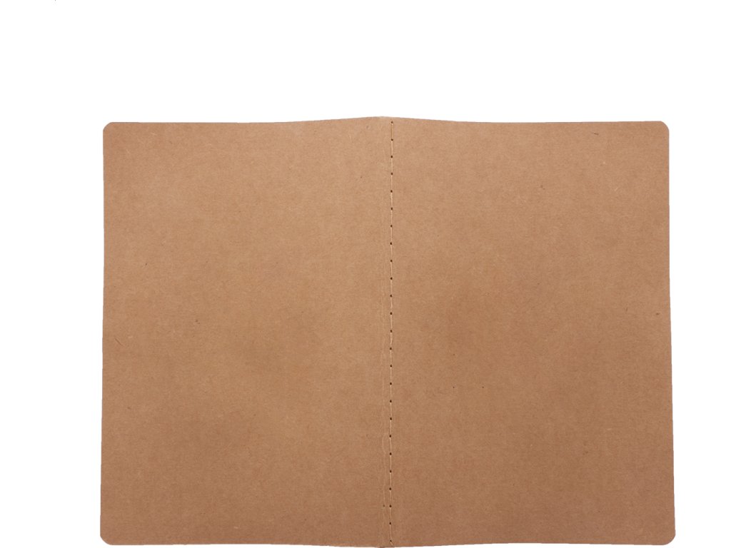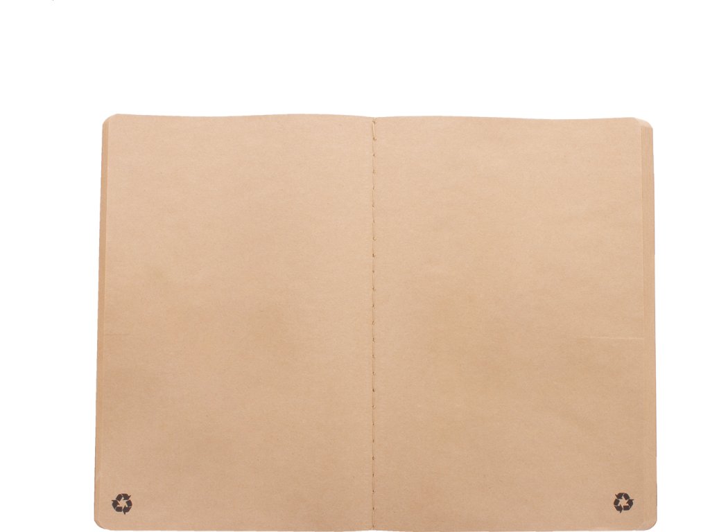 Blok A5 s deskami z recyklovaného papíru, šitý a 60 prázdnými listy z recyklovaného kraftového papíru.