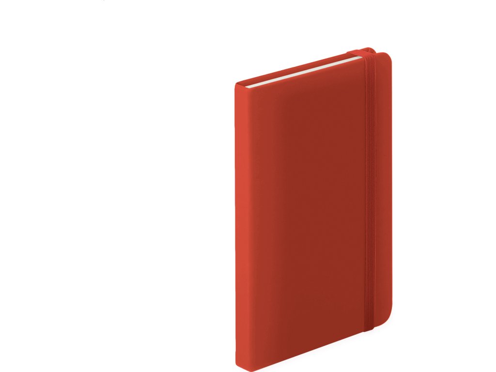 Blok s deskami z PU kůže, se 100 linkovanými listy, záložkou a gumičkou. Velikost A6.