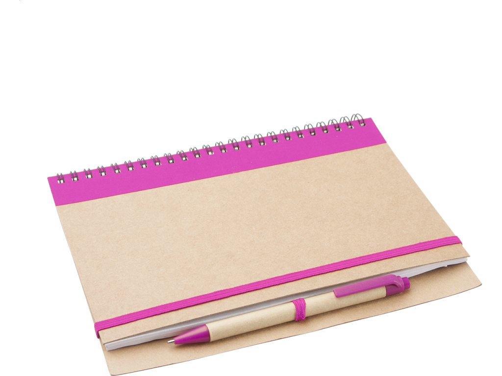 Nelinkovaný blok z recyklovaného papíru, se 60 listy a s papírovým kuličkovým perem.