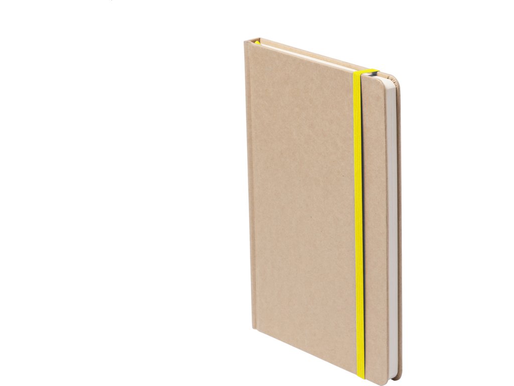 Blok s deskami potaženými recyklovaným kartonem se 100 čistými listy, barevnou záložkou a gumičkou.