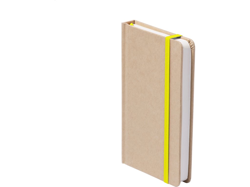 Blok s deskami potaženými recyklovaným kartonem se 100 čistými listy, barevnou záložkou a gumičkou.