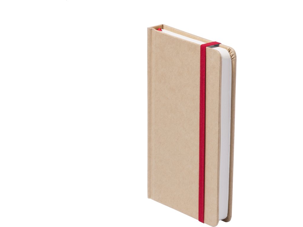 Blok s deskami potaženými recyklovaným kartonem se 100 čistými listy, barevnou záložkou a gumičkou.