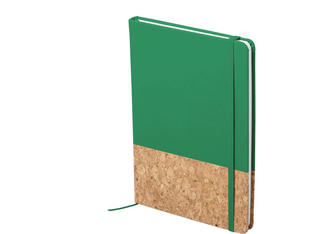 Blok A5 s deskami z přírodního korku a PU kůže, s gumičkou a 98 čistými listy.