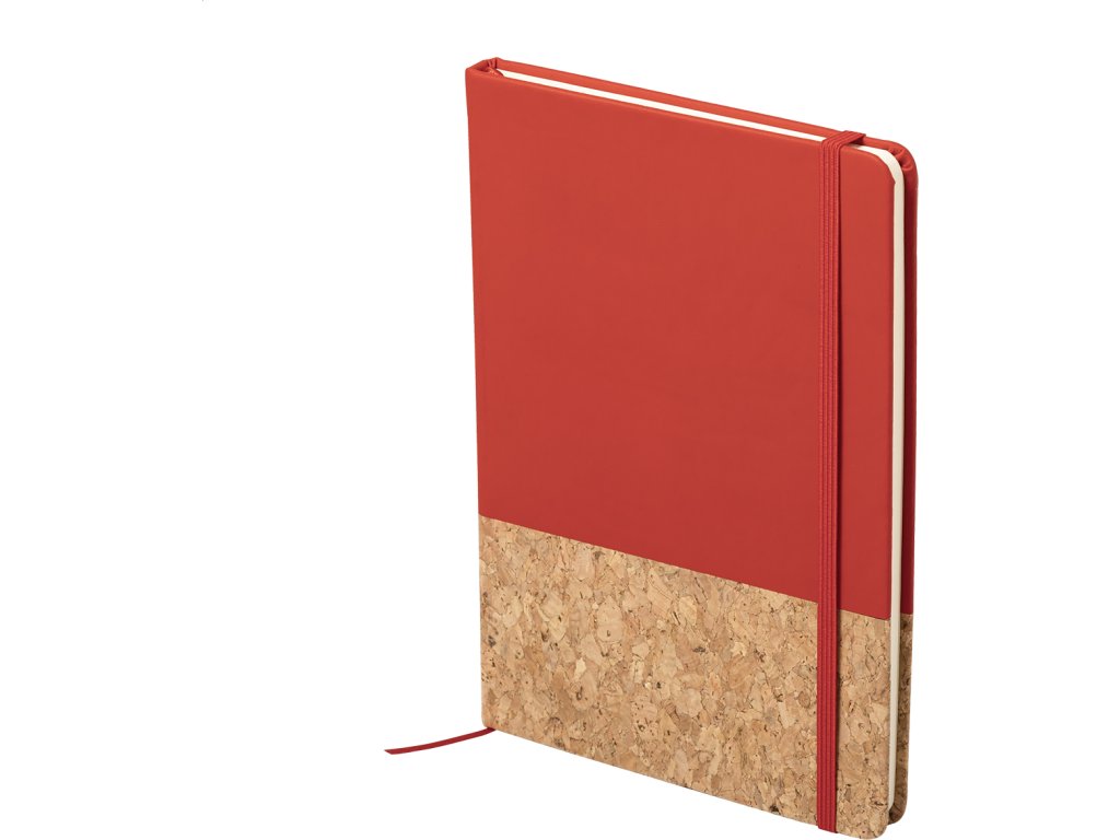 Blok A5 s deskami z přírodního korku a PU kůže, s gumičkou a 98 čistými listy.