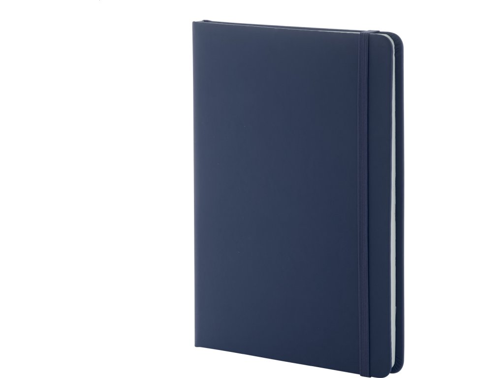 Blok A5 z recyklované PU kůže se 100 čistými listy z recyklovaného papíru. Se záložkou v odpovídající barvě a gumičkou.