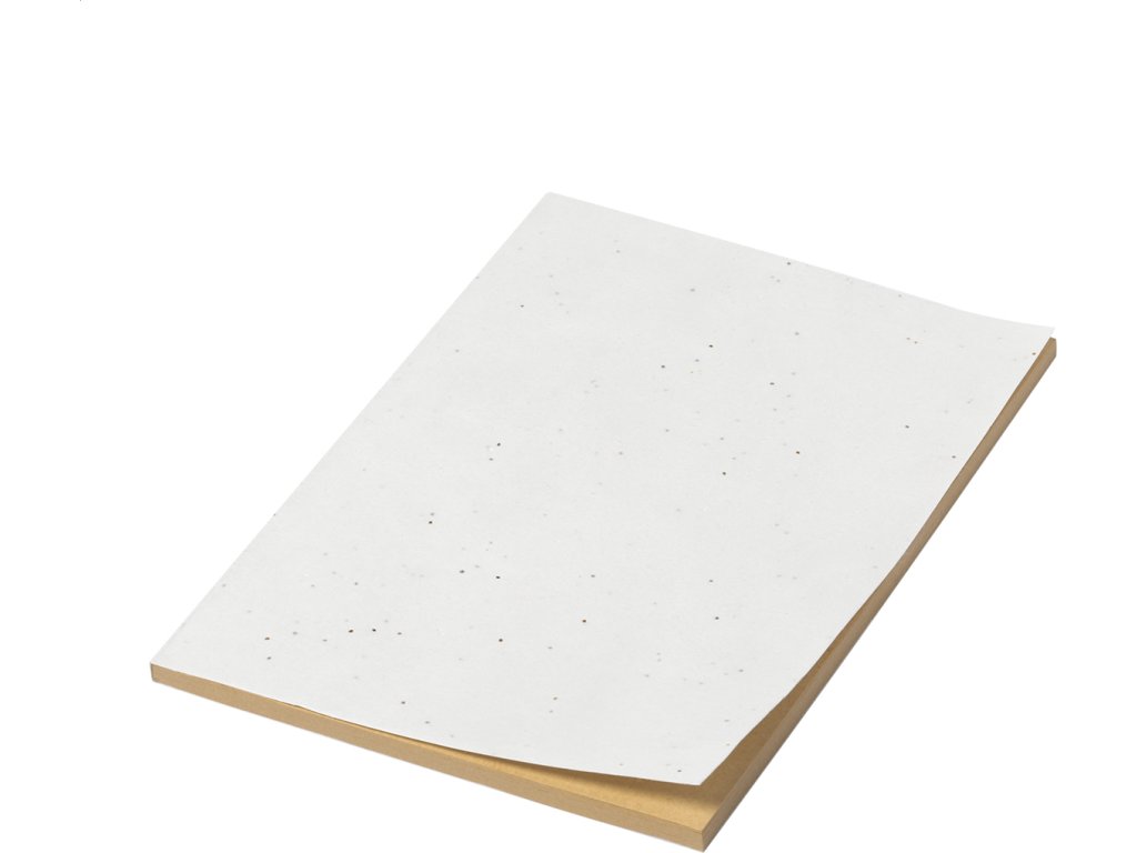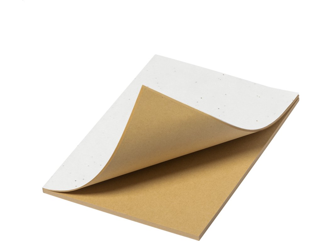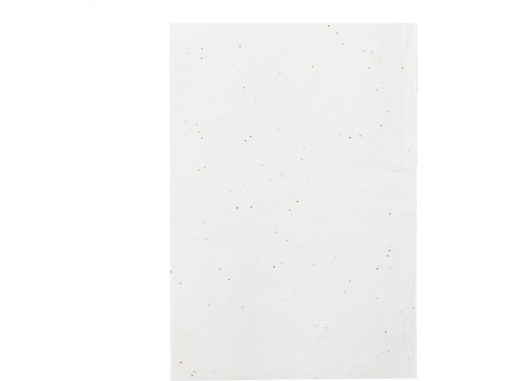 Blok A5 z recyklovaného kraftového papíru potažený papírem se semínky se 60 čistými listy. Obal papíru se semínky obsahuje semena petúnie v různých barvách, která lze zasadit oddělením obalu od sešitu.