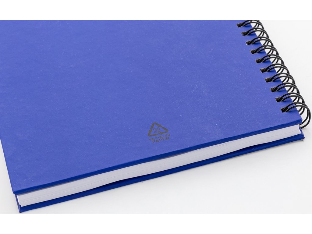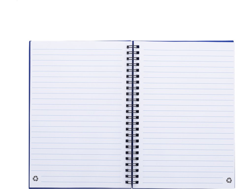 Spirálový blok A5 s 80 linkovanými listy z recyklovaného papíru.