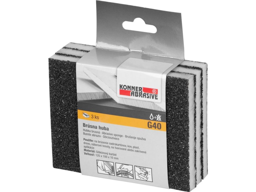 Huba KONNER G40, brúsna špongia, 125x100x10 mm, bal. 3 ks