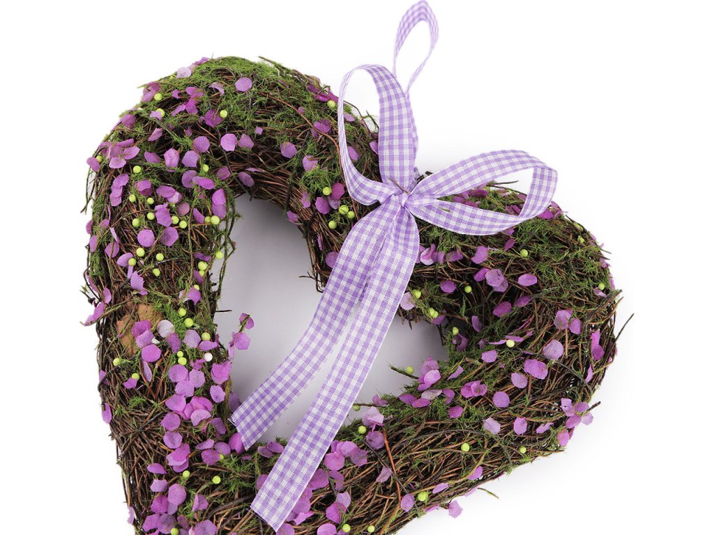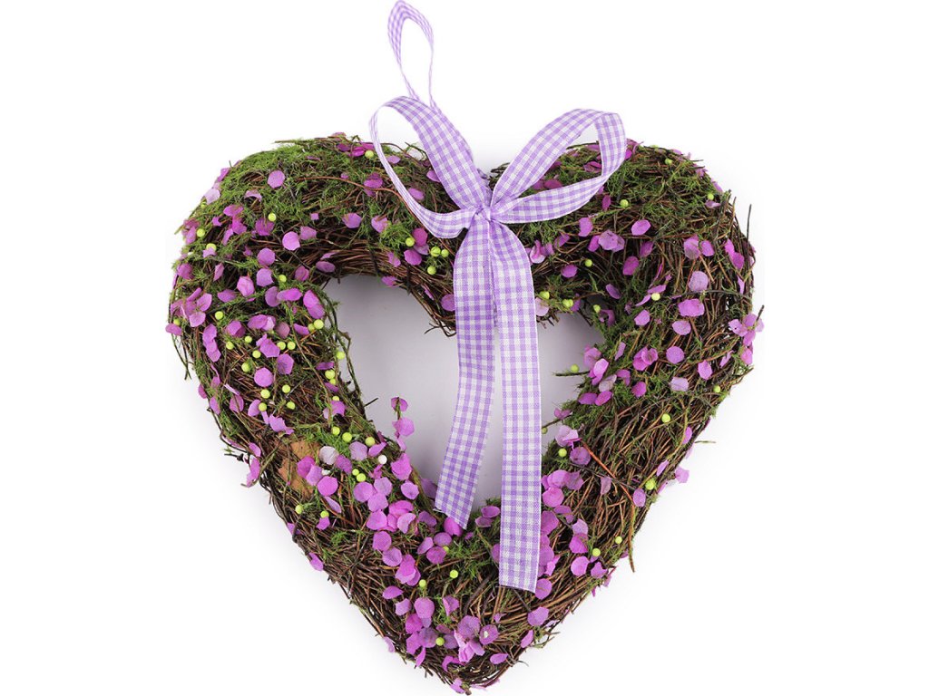 Proutěné srdce vynikne pověšené na dveřích, v oknech i na zdi. Svěží nádech mu dodávají drobné textilní okvětní lístky a umělý mech. Jelikož jsou srdíčka z přírodního materiálu, jejich velikost a hustota se může trochu lišit.