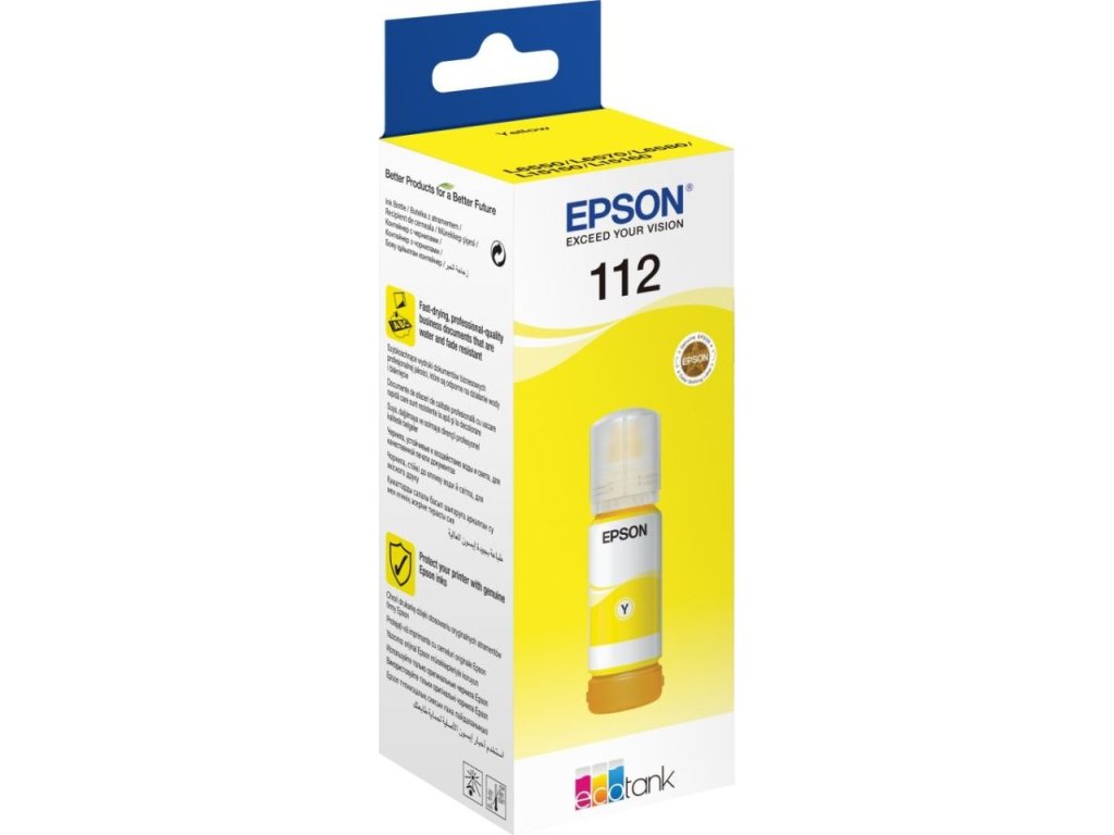Inkoust řady 112 Řada rychleschnoucích inkoustů EcoTank 112 obsahuje pigmentové inkousty pro výtisky odolné vůči rozmazání a zvýrazňovačům. Tento spolehlivý a vysoce kvalitní inkoust vám zaručí dokonalé výtisky se skvěle čitelným textem a zářivými bar...
