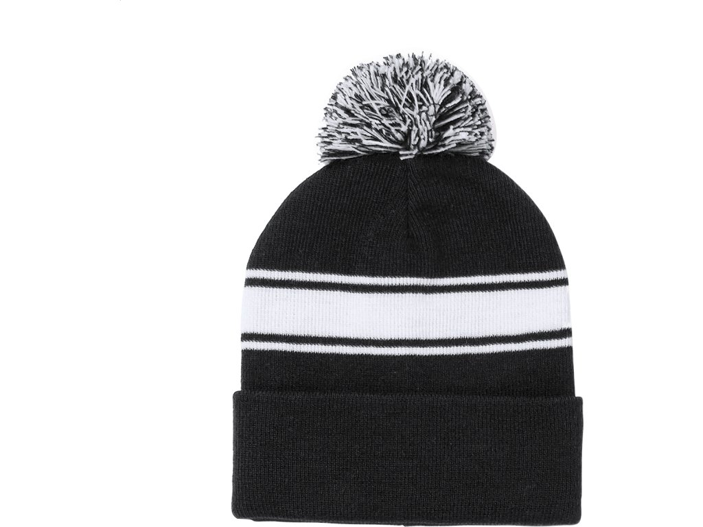 Akrylová zimní čepice s bílými pruhy a bambulí do barvy.