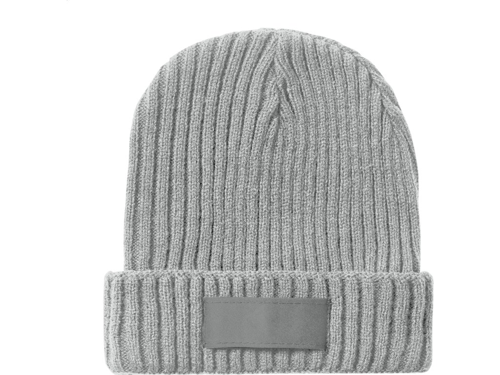 Akrylová pletená zimní čepice s nášivkou na potisk.