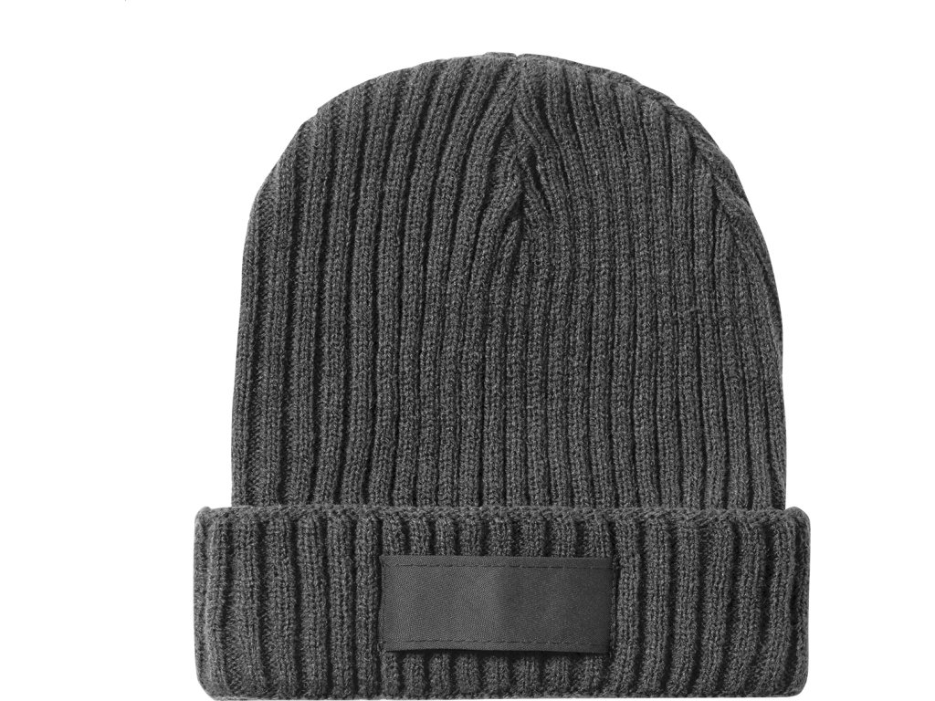 Akrylová pletená zimní čepice s nášivkou na potisk.