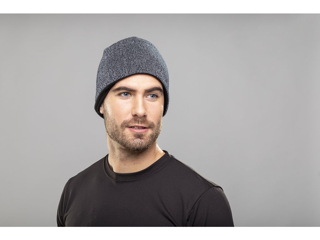 Sportovní zimní čepice z akrylu z reflexního materiálu a podšívkou z polar fleecu.