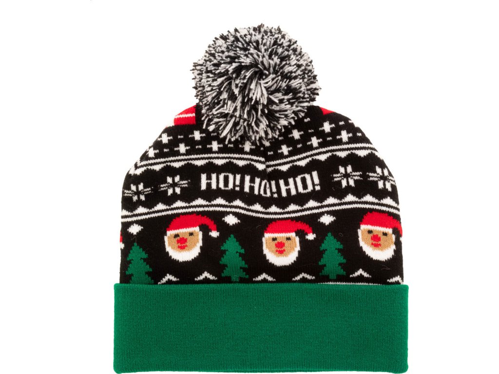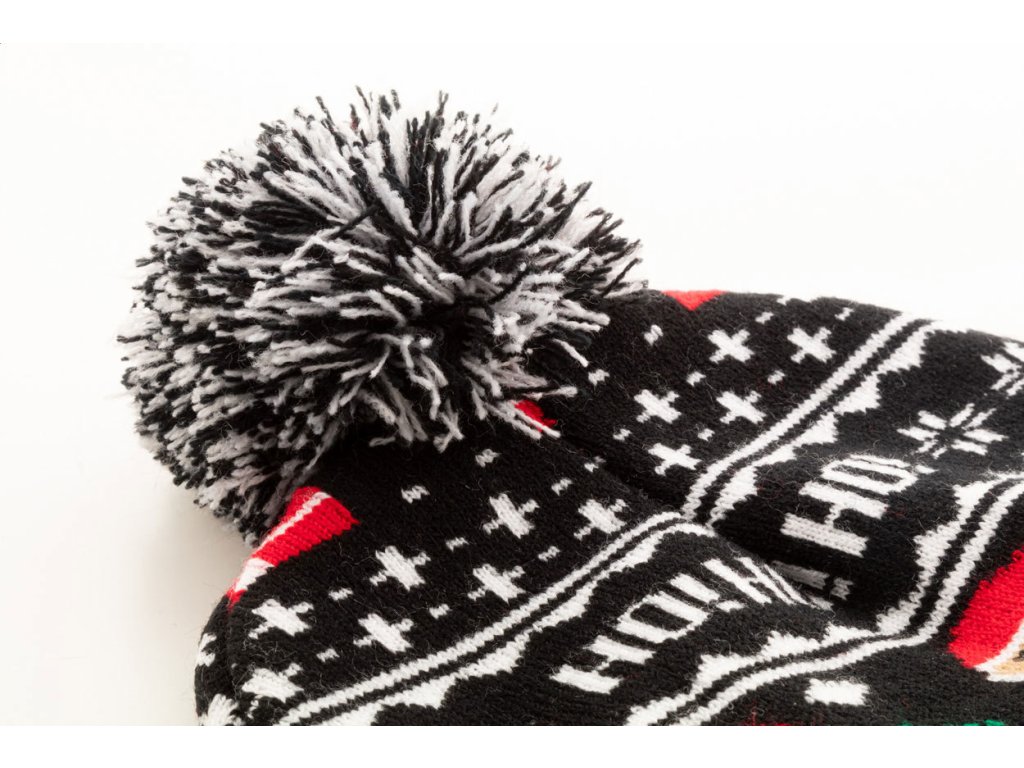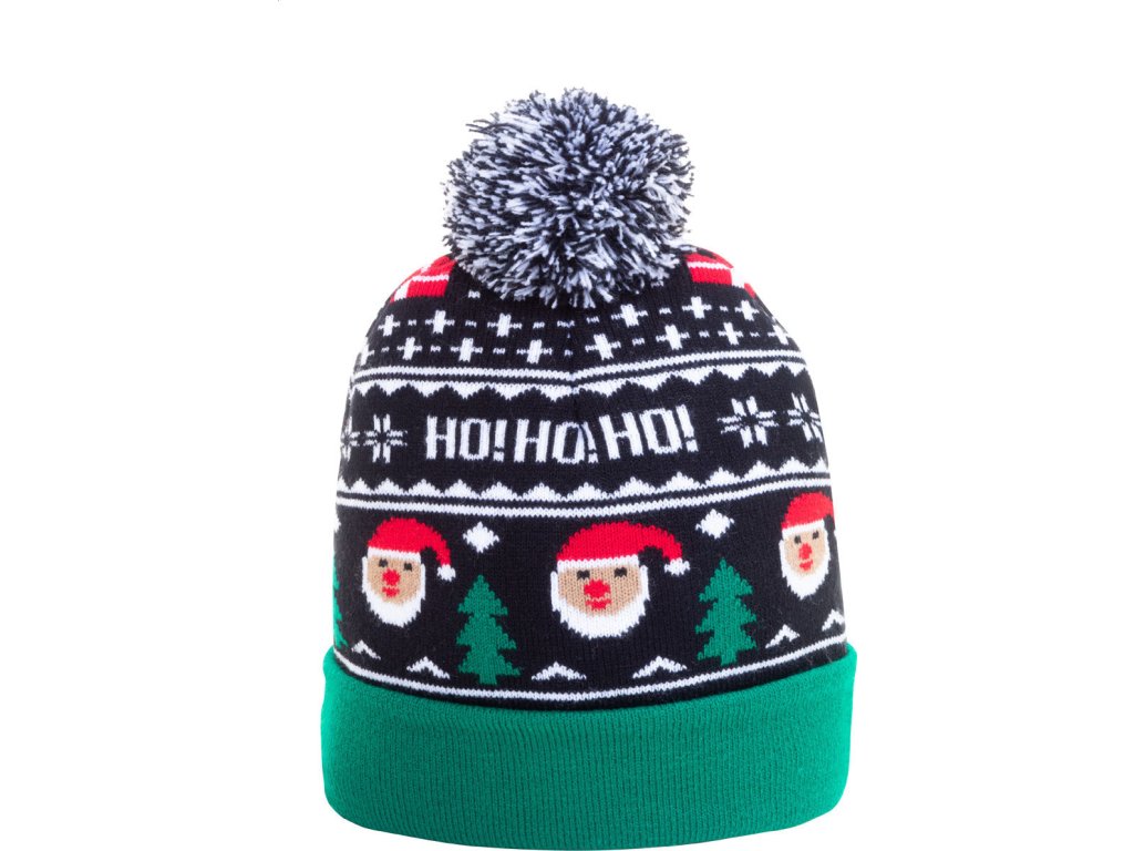 Pletená vánoční zimní čepice z akrylu s bambulí.