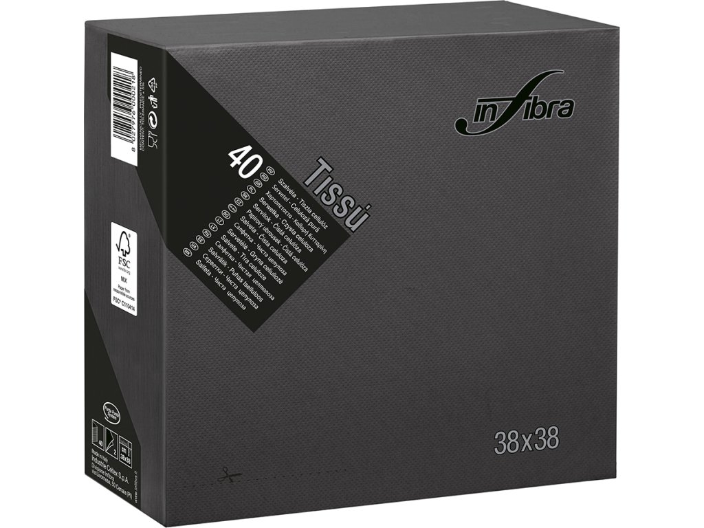 Papírové ubrousky INFIBRA Linea New Soft-touch černá 2vrstvy 38x38cm - 40ks