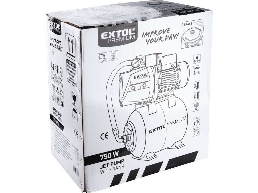 EXTOL PREMIUM čerpadlo proudové s tlakovou nádobou, 750W, 5270l/hod, 3bar 8895095