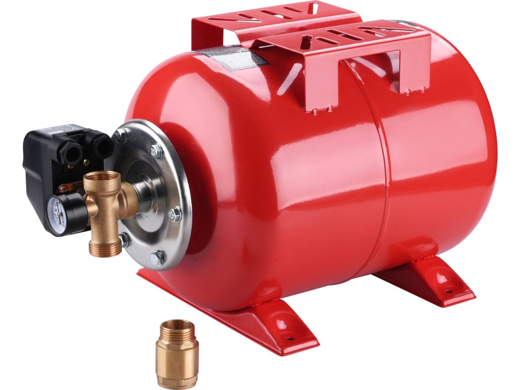 Vodárna pro čerpadla do vrtu je určena pro zalévání nebo pro rozvod čisté vody v potrubí s uzávěrem vody a zahrnuje zásobník na vodu a řídící tlakovou jednotku, která uvede čerpadlo do provozu nebo jej vypne v závislosti na tom, zda je odběr vody či nikoli. Součástí sady je také manometr, mosazný připojovací člen k zásobníku na vodu s 5výstupy a mosazný konektor se zpětnou klapkou pro přišroubování na výstup z čerpadla.