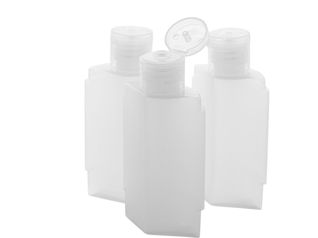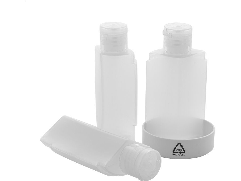 Sada cestovních kosmetických lahviček se 3 PET lahvičkami (40 ml) v držáku z recyklovaného ABS.